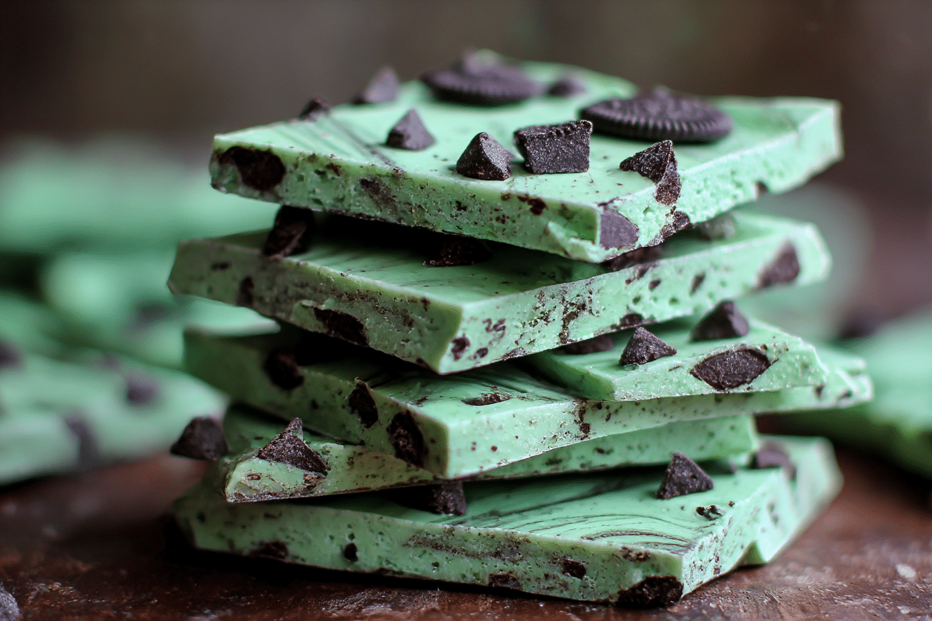 Mint Oreo cookies provide crunch and that signature cool mint flavor. Roughly chopping them ensures visible cookie pieces throughout the bark.
