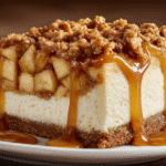 Originating as a creative twist on traditional apple pie and cheesecake, apple crisp cheesecake is especially popular in the fall, but it’s just as fitting for holidays, potlucks, or year-round indulgence. The contrast of textures — buttery graham crust, silky filling, tender apples, and crunchy topping — makes it impossible to resist.
