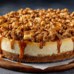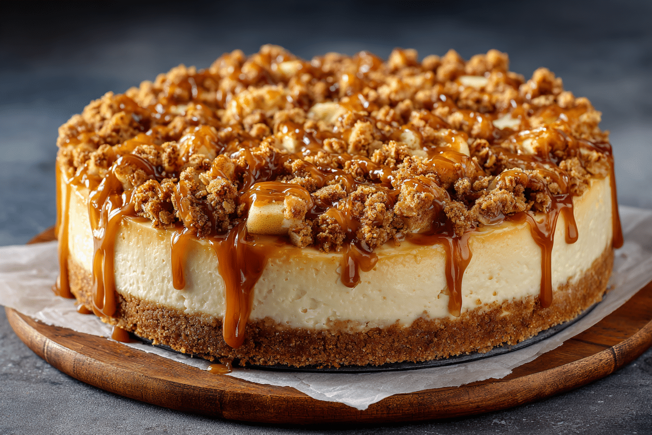 A creamy cheesecake layered with tender cinnamon apples and a golden oat crumble topping — the perfect fusion of cheesecake and apple crisp.