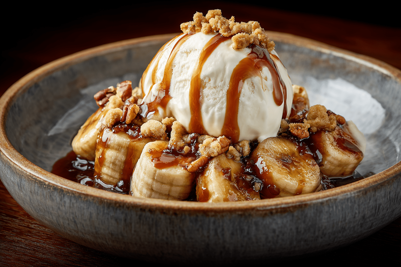 Bananas Foster is a decadent New Orleans-born dessert that brings together ripe bananas, brown sugar, butter, and dark rum into a warm, syrupy sauce — traditionally flambéed tableside. This version adds toasted pecans and extra caramel for a richer twist, making it a true showstopper for dinner parties or cozy nights in.