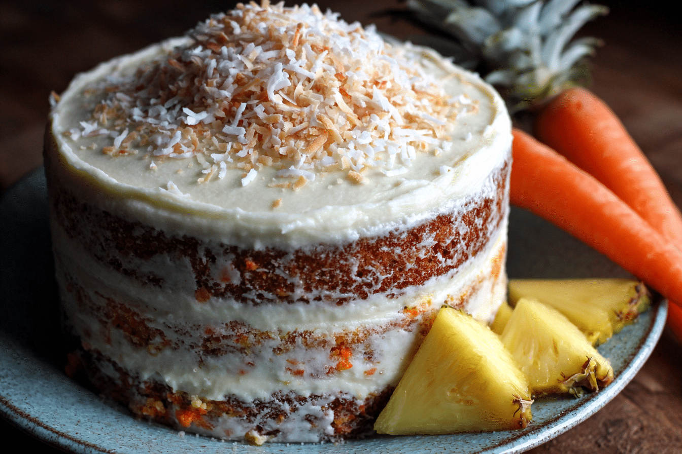 A moist, spiced carrot cake made tropical with crushed pineapple and layered in creamy, tangy frosting. Perfect for spring celebrations and sunshine-filled days.