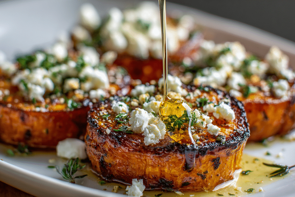 Roasted sweet potato rounds with honey and feta are the perfect marriage of caramelized sweetness, salty creaminess, and a touch of herbaceous freshness. These elegant little bites are ideal for …