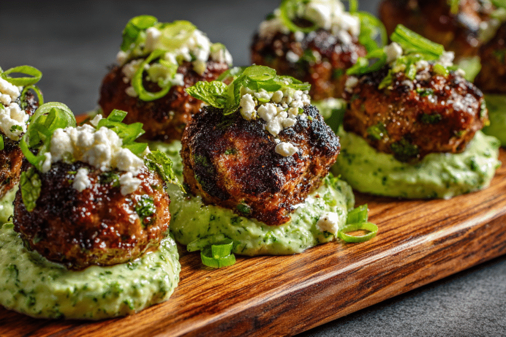 Spicy lamb meatballs with green dip are a vibrant, protein-rich appetizer or main dish with bold Middle Eastern and Mediterranean flavor influences. These tender, juicy meatballs are infused with warming …