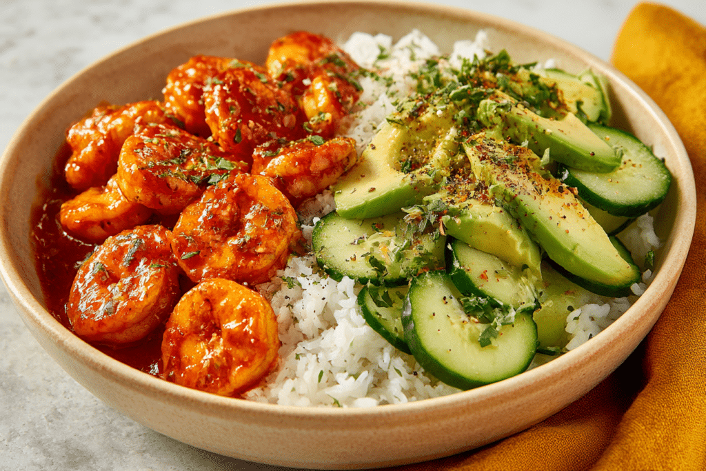 Zesty Chili Lime Shrimp with Rice & Avocado
