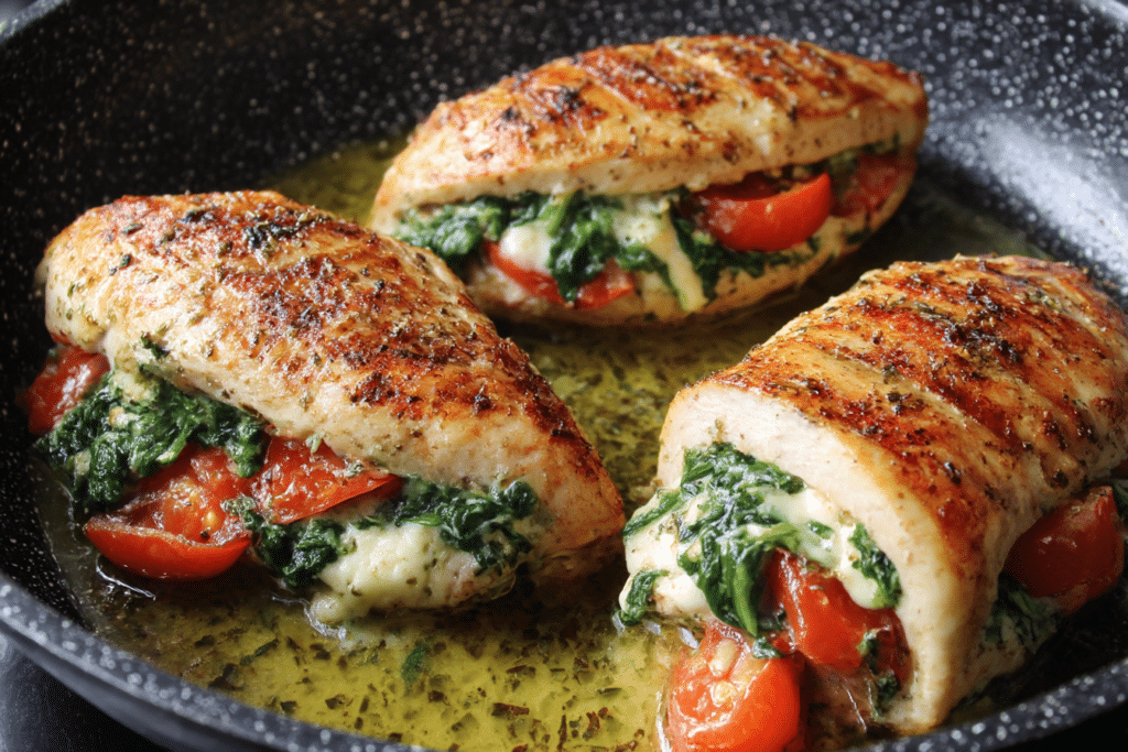 Easy Pesto Mozzarella Tomato Stuffed Chicken Breasts