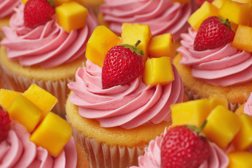 Mango Strawberry Cupcakes Made with Fresh Summer Fruit