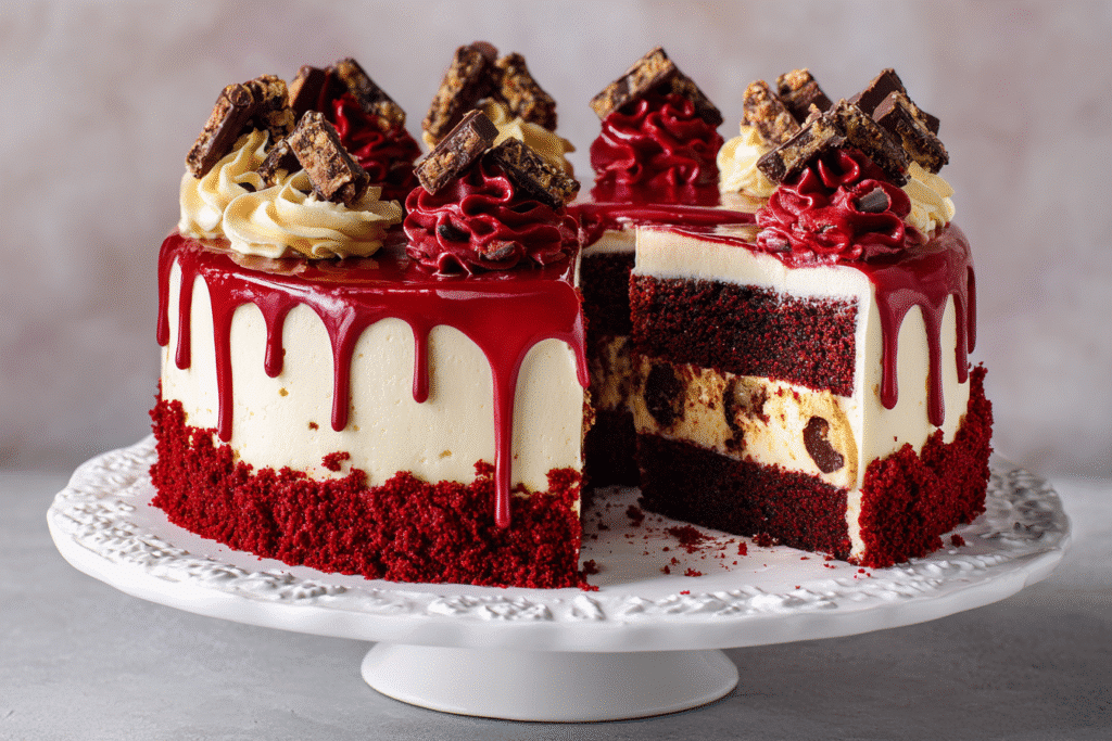 Red Velvet Cheesecake Layer Cake is the ultimate marriage of two decadent classics: moist red velvet cake and creamy New York-style cheesecake. With its striking red-and-white contrast and luscious texture, …