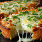 Made with fresh baguette or soft dinner rolls, it’s loaded with a rich garlic butter spread and topped with a blend of melty cheeses that bubble and brown beautifully in the oven. Whether served as a side dish, snack, or party appetizer, this bread disappears in minutes—sometimes before it even hits the table.
