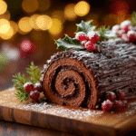 The Chocolate Yule Log, or Bûche de Noël, is a timeless holiday dessert with European roots — especially in French and Belgian traditions — that has become a centerpiece on many Christmas tables around the world. This rolled sponge cake, filled with whipped cream or buttercream and covered in chocolate ganache, is styled to resemble a wooden log, symbolizing the ancient tradition of burning a Yule log to celebrate the winter solstice.