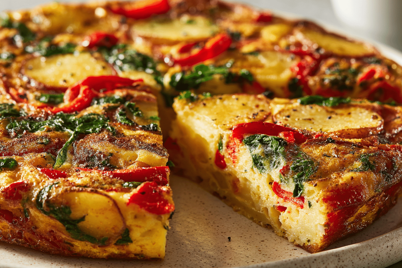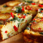 This vibrant frittata with potatoes, red peppers, and spinach is a simple yet satisfying dish that combines fresh vegetables and fluffy eggs into a wholesome meal. Each bite is packed with flavor and texture, from tender, golden potatoes to sweet red peppers and crisp, fresh spinach. It’s perfect for breakfast, brunch, or a light dinner and works equally well as a meal prep option or a centerpiece for a casual gathering.