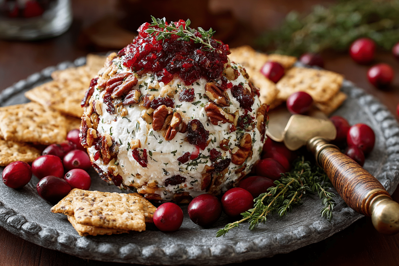 This cranberry pecan goat cheese ball is a festive blend of creamy goat cheese, sweet cranberries, and toasted pecans — perfect for holiday parties and elegant appetizer spreads.