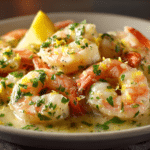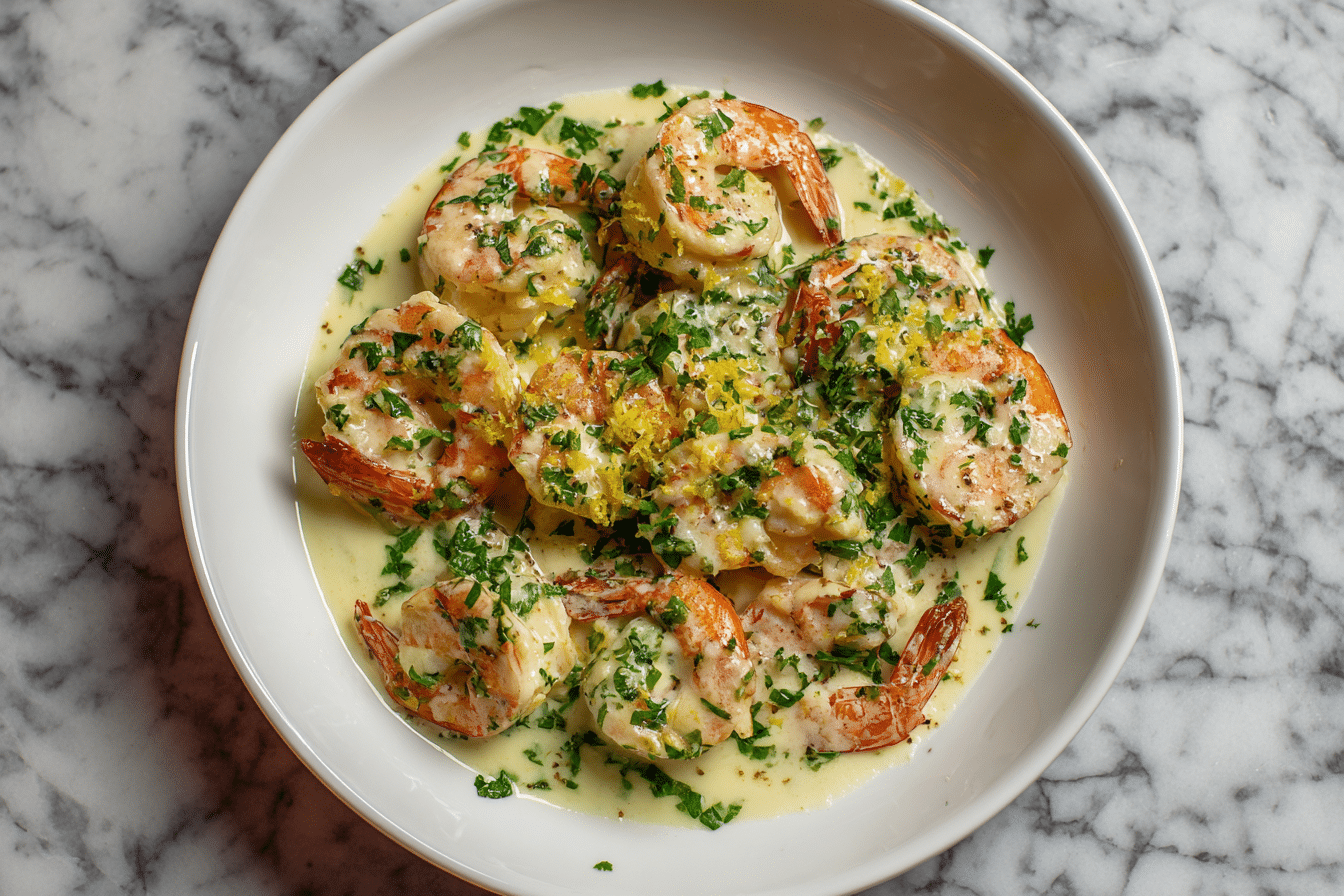 Shrimp cooks in a short time, which suits a dish built around speed and controlled heat. Garlic is gently heated in butter to release aroma, then combined with cream and broth to form a silky base. The shrimp are returned at the end so they absorb the sauce without overcooking.