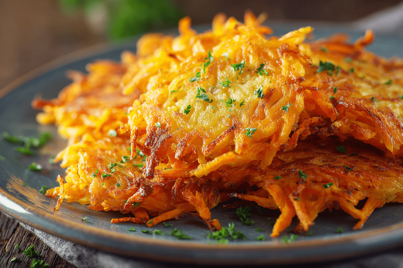 These hash browns are designed to be easy to make without sacrificing flavor. With a few key ingredients and minimal cooking steps, they deliver a crisp texture on the outside and a soft, slightly sweet interior. Perfect for busy mornings or relaxed weekend meals, they pair beautifully with eggs, fresh herbs, or a simple dollop of yogurt.