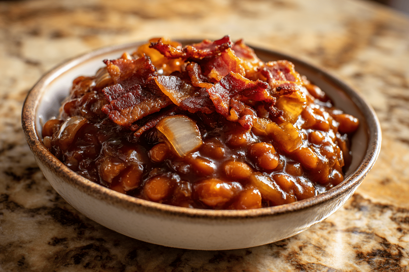 Sweetness comes from brown sugar, molasses, and ketchup, while Dijon mustard and apple cider vinegar provide a subtle tang that balances the richness. Worcestershire sauce contributes an extra layer of umami. Optional chili powder or hot sauce can give the beans a gentle kick.