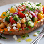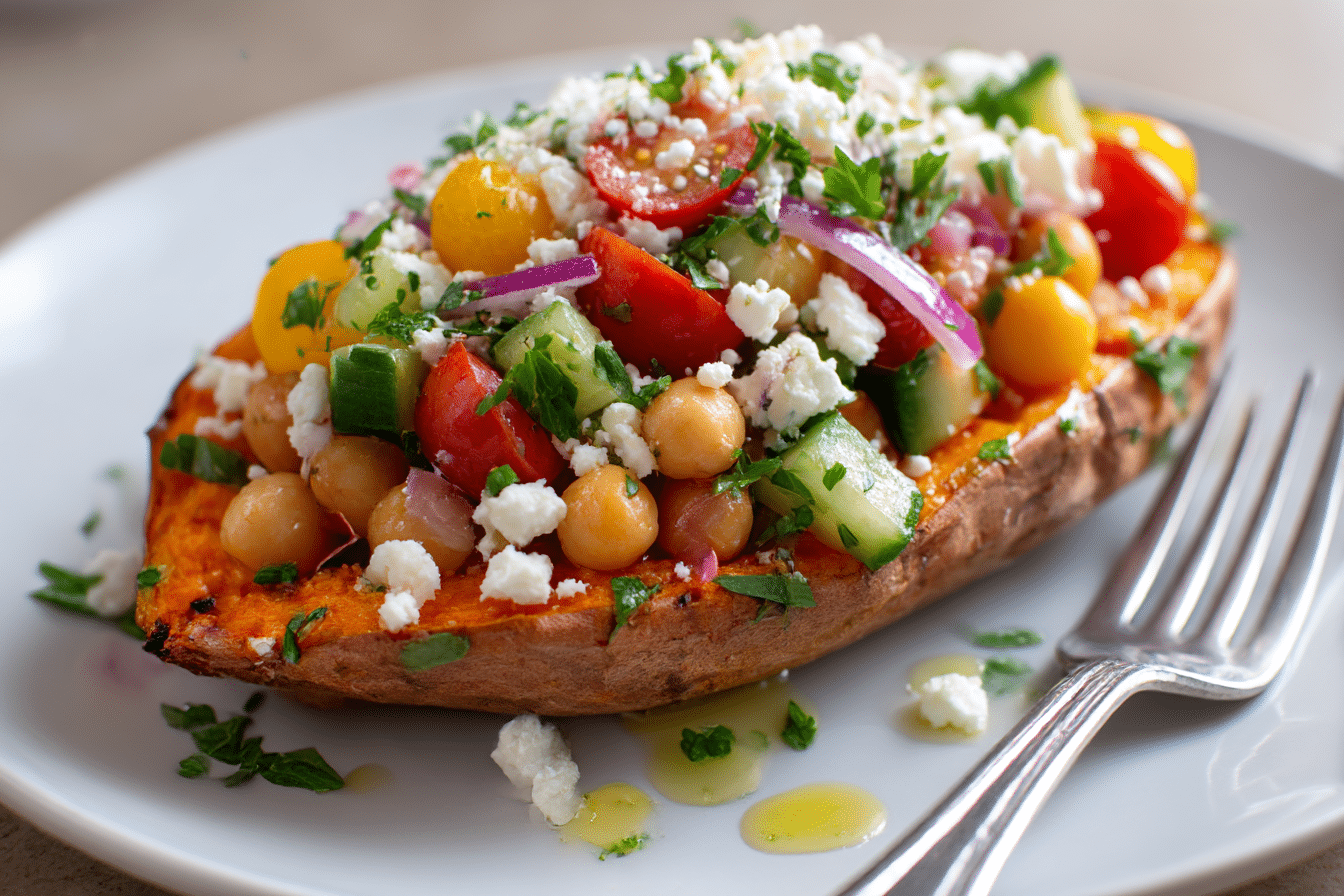 Mediterranean Stuffed Sweet Potatoes are a vibrant and nourishing meal that combines roasted sweet potatoes with classic Mediterranean flavors. Tender, naturally sweet potatoes are filled with a savory mixture of chickpeas, vegetables, herbs, and creamy toppings to create a wholesome and satisfying dish. This easy recipe is perfect for weeknight dinners, healthy meal prep, or a colorful vegetarian option that doesn’t sacrifice flavor.