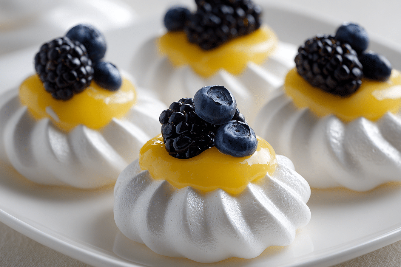 This dessert is all about texture and balance. The meringue shells are crisp on the outside with a slight marshmallow-like softness inside. The lemon curd adds a rich, glossy finish that melts on your tongue with vibrant tartness. Together, they’re refreshing, sweet, and visually stunning on any dessert table.