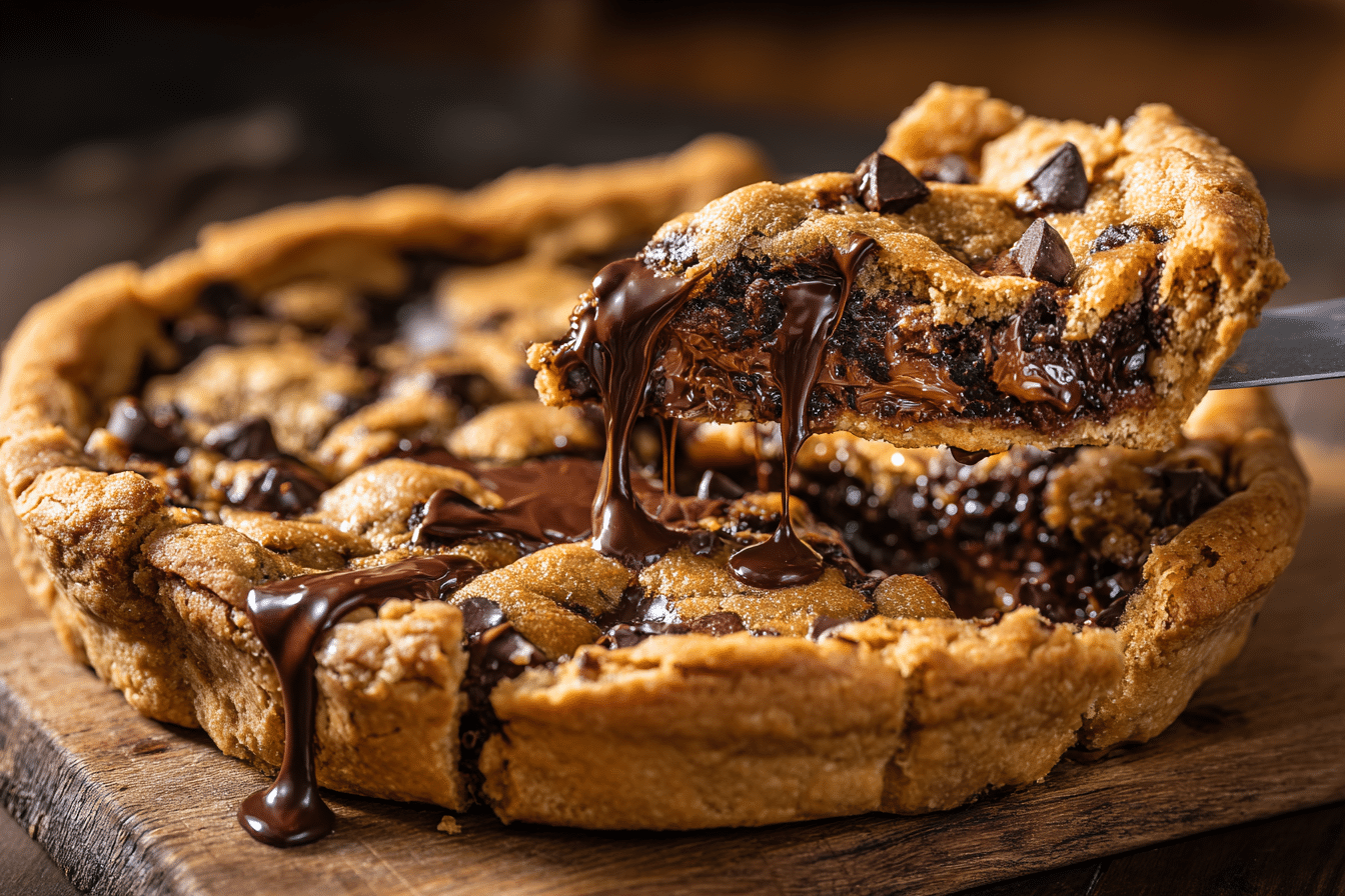 A gooey, deep-dish cookie pie swirled with Nutella and baked to golden perfection. Crisp on the edges, chewy in the center, and perfect for sharing.