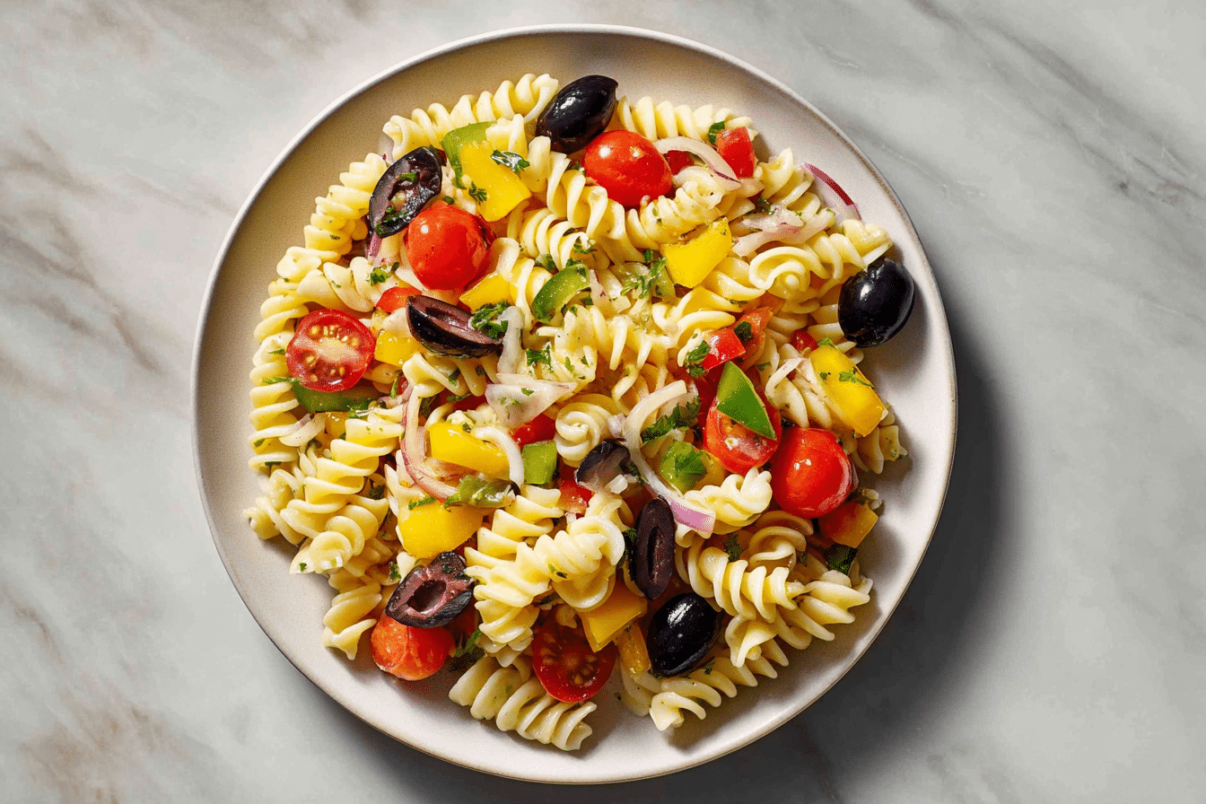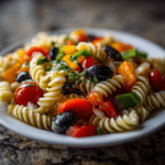 Easy Pasta Salad pairs perfectly with grilled meats, sandwiches, or as a side at picnics and potlucks. With added protein, it becomes a satisfying main dish. Its bright colors and fresh flavors make it ideal for summer gatherings, casual lunches, or festive celebrations.