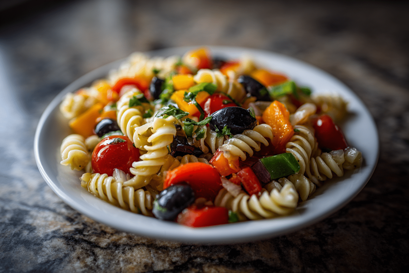 Substitutions are simple: Greek yogurt can replace mayonnaise for a lighter, tangier dressing, or you can choose gluten-free pasta if needed. Roasted vegetables can be used instead of raw for a deeper flavor profile. The goal is to maintain balance between textures and flavors to create a visually appealing and satisfying salad.