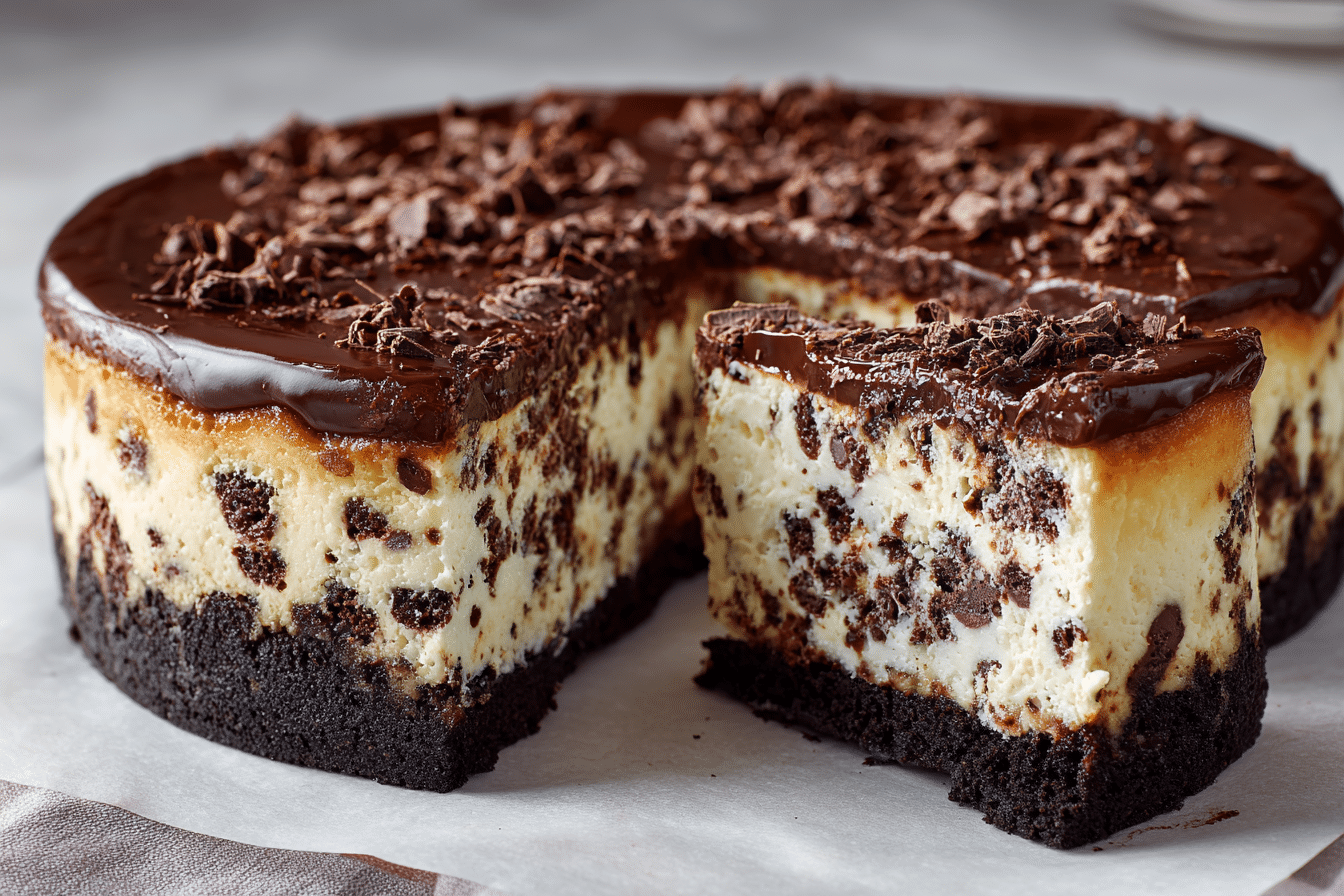 Perfect for chocolate lovers who still crave the lightness of a baked cheesecake, this cake delivers a harmonious balance between rich and refreshing. It’s the kind of dessert that vanishes slice by slice at gatherings, birthdays, or slow Sunday afternoons. The slight crunch of chocolate amidst the fluffy filling, all sitting atop a tender crust, creates a texture you’ll remember long after the last bite.