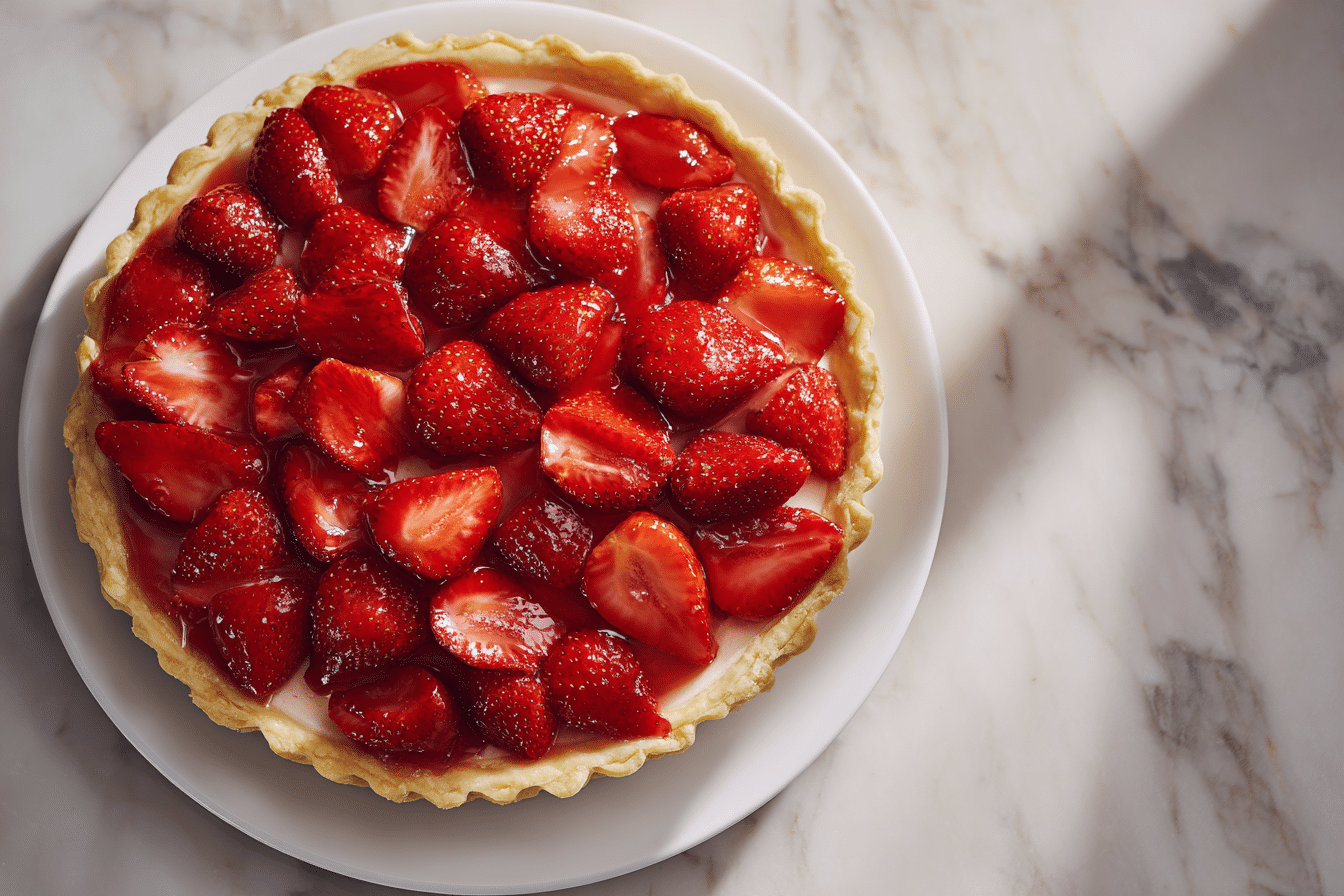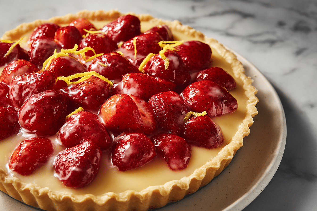 By choosing high-quality ingredients and following simple techniques, Fresh Strawberry Pie with Lemon Glaze transforms ordinary strawberries into a dessert that’s both eye-catching and bursting with flavor. Its bright, fruity aroma and appealing presentation make it a standout at any dessert table.