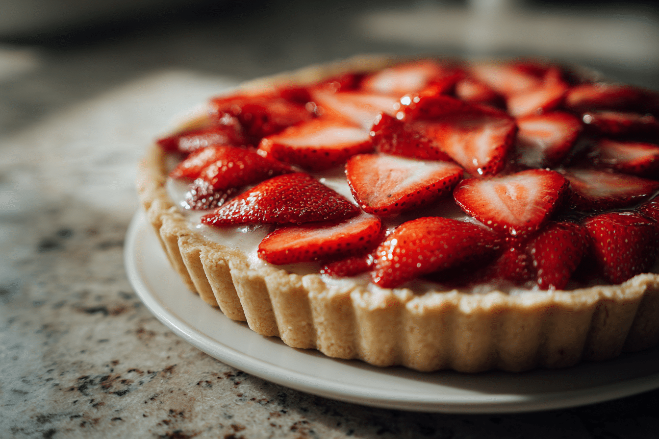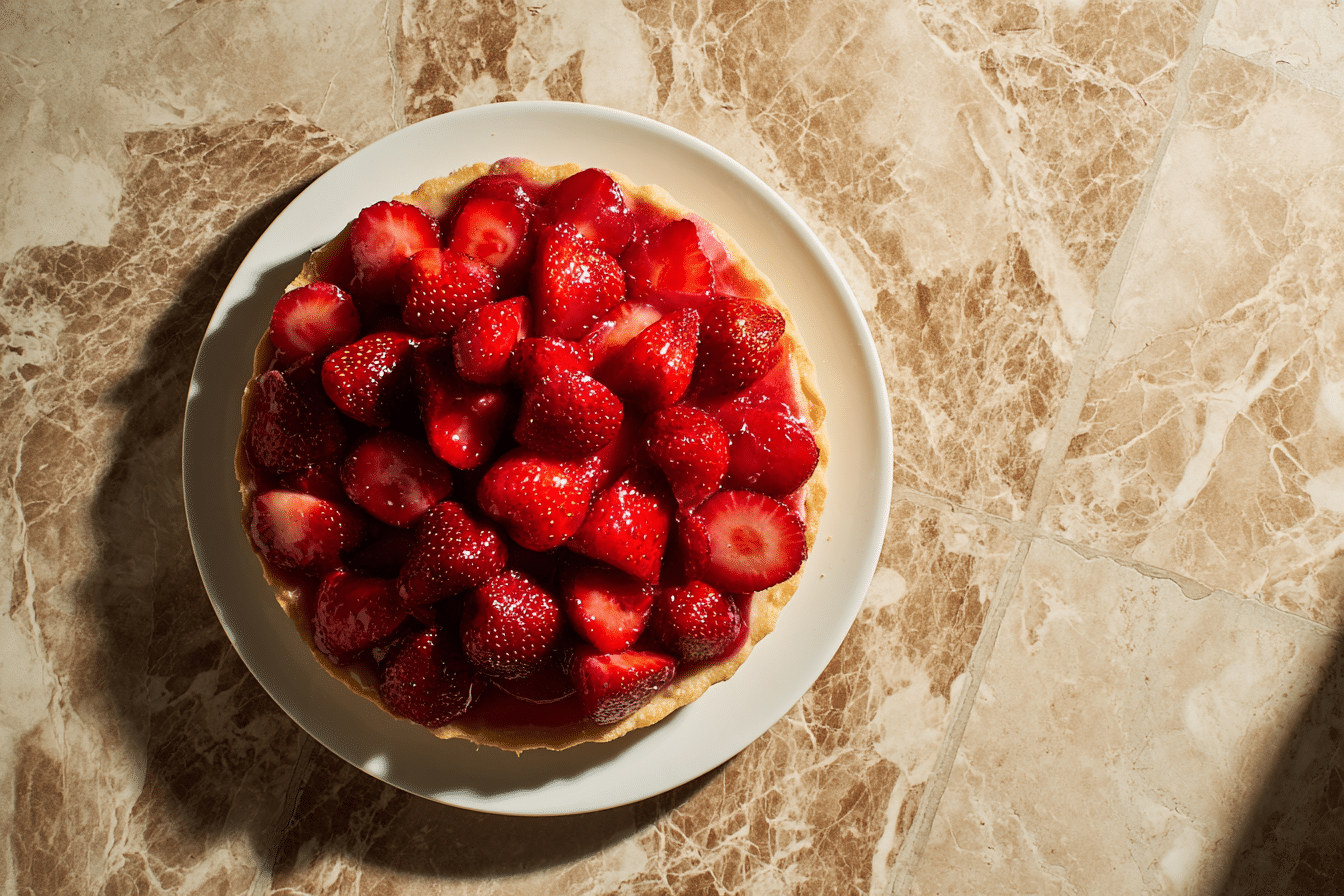 A glaze made from strawberry preserves and a thickening agent like cornstarch coats the berries, adding shine and locking in moisture. Lemon juice provides a bright contrast to the sweet glaze and highlights the natural flavor of the strawberries. Together, these ingredients create a dessert that is visually appealing, flavorful, and balanced in texture.