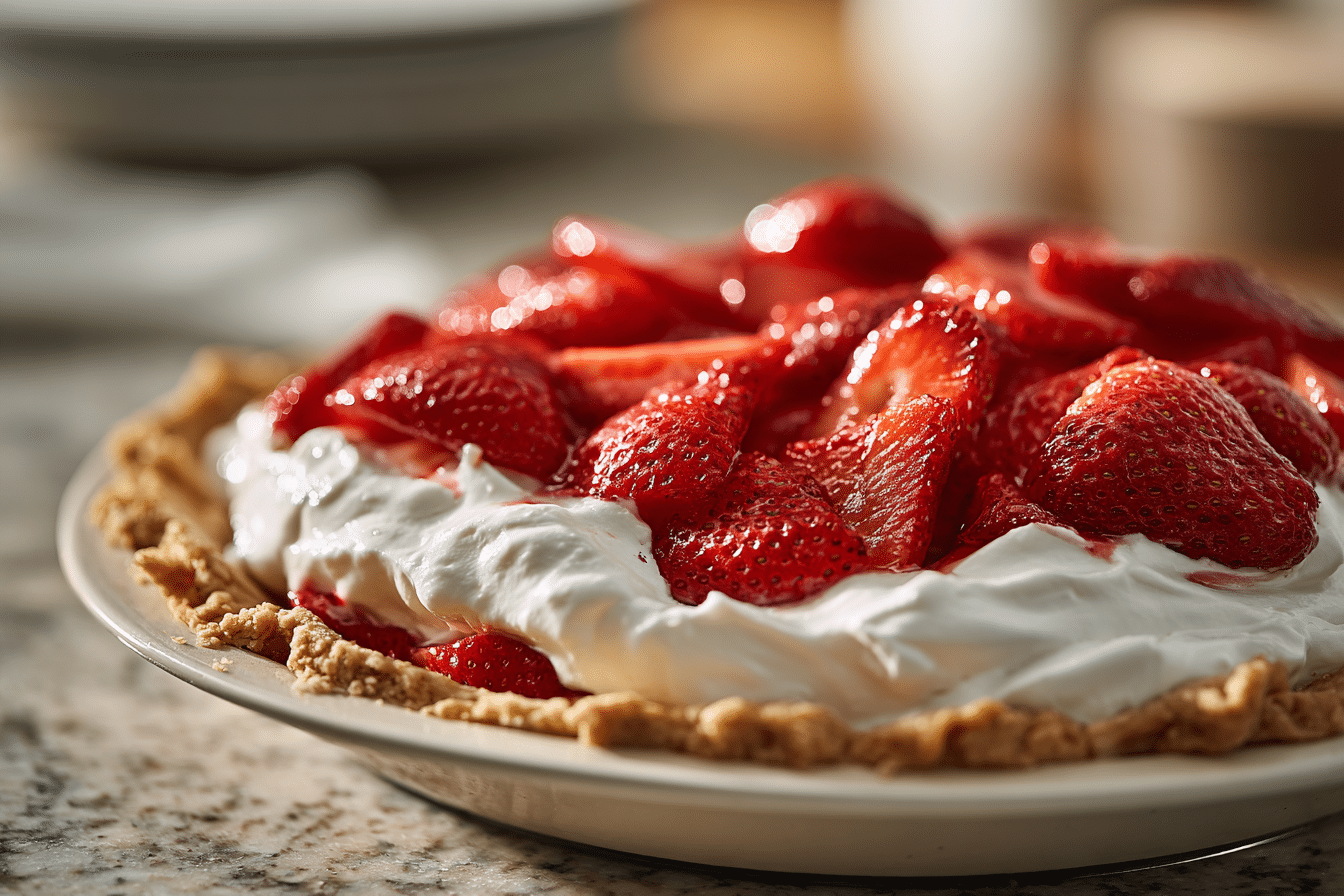 Strawberries provide vitamin C, antioxidants, and dietary fiber, adding nutritional value to this dessert. While the pie contains sugar and cream, it can be enjoyed in moderation. Using whole-grain or nut-based crusts adds fiber and healthy fats. Reducing sugar in the whipped cream makes a lighter version without sacrificing flavor. This pie combines fresh fruit with creamy indulgence for a dessert that is satisfying yet light.