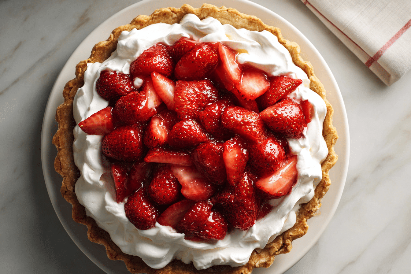 This pie balances simplicity and elegance. The strawberries offer natural sweetness and a gentle tartness, while the crust gives structure and a delicate crunch. Whipped cream adds a silky, luxurious layer, creating a dessert that feels indulgent yet light. Preparing this pie is satisfying, turning fresh, accessible ingredients into a visually stunning and flavorful treat that delights every sense.