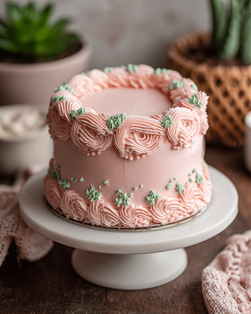 This cake isn’t just about flavor—it’s also about texture: tender pistachio cake layers, silky frosting, and juicy raspberry pockets. The result is a dessert that feels light, fresh, and indulgent all at once.
