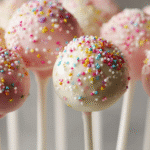 Dip each cake pop into the pink coating, turning gently to cover completely. Tap off excess coating and immediately add sprinkles before the shell sets.