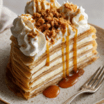 A stunning no-bake crêpe cake layered with vanilla pastry cream and Speculoos spread. Delicate, spiced, and perfect for holiday celebrations or cozy winter days.