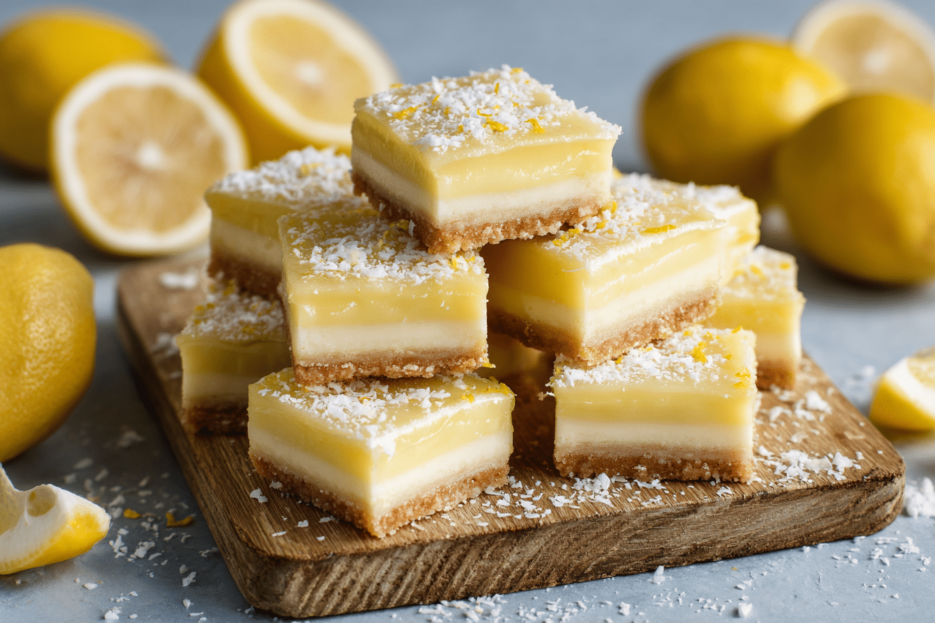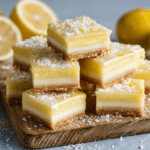 With a buttery biscuit base, a rich lemon-condensed milk filling, and a light dusting of coconut or zest on top, it’s a dessert that balances tangy and sweet in every cool, creamy bite. Best of all? No oven is needed—just chill, slice, and serve.