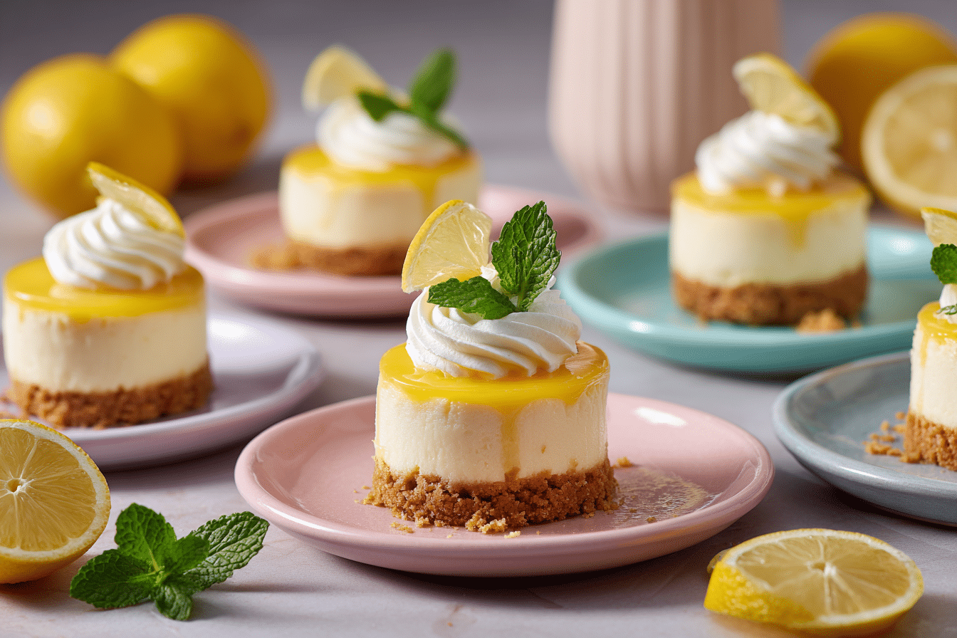 Creamy, tangy mini cheesecakes baked in muffin tins with a graham cracker crust and bright lemon flavor — perfect for springtime or any sweet occasion.