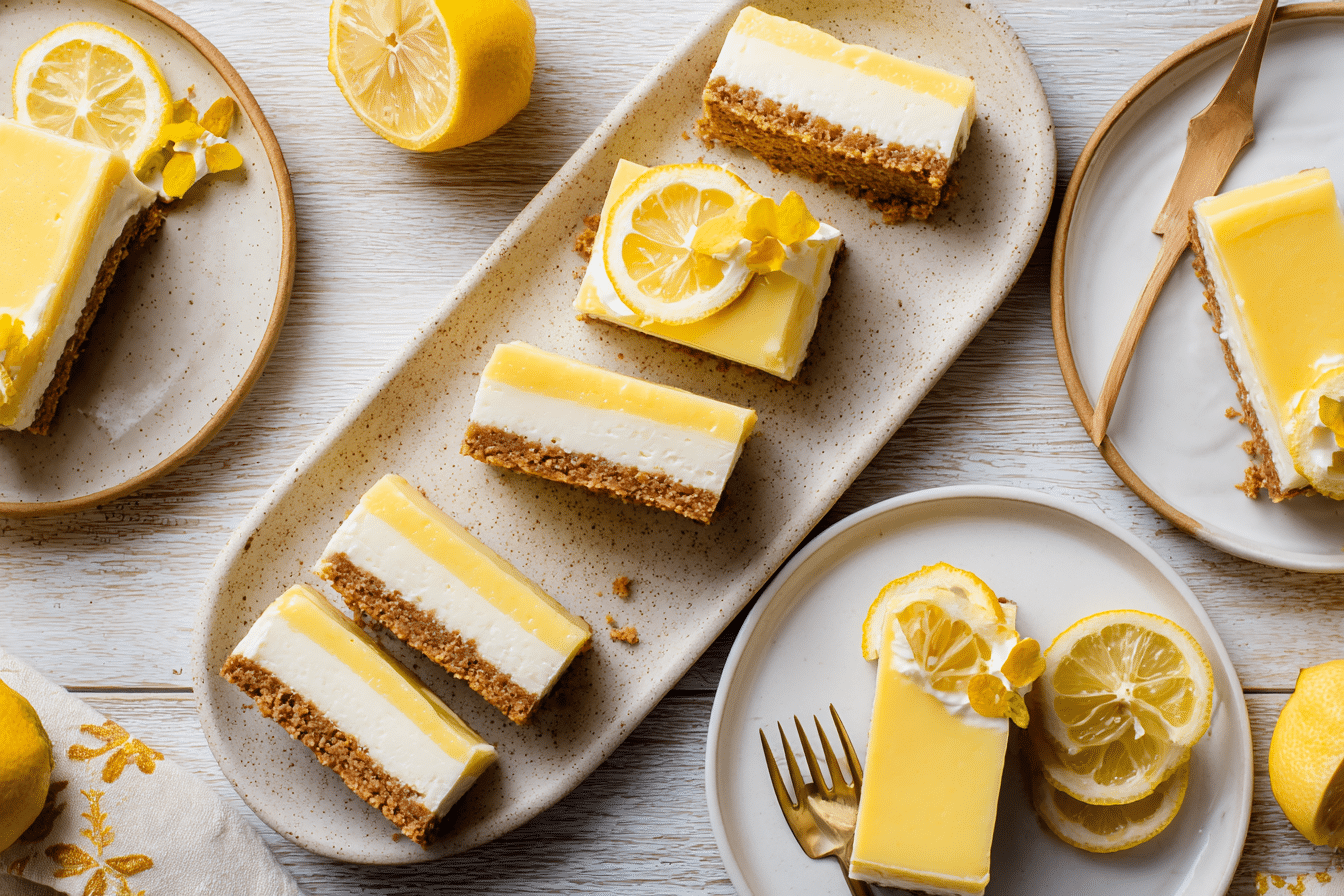 Bright, creamy, and effortlessly refreshing, these No-Bake Vegan Lemon Cheesecake Bars are the perfect plant-based treat for sunny afternoons or elegant entertaining. With a zesty citrus kick and a silky-smooth texture, they offer all the satisfaction of classic cheesecake—without dairy, baking, or refined sugar.