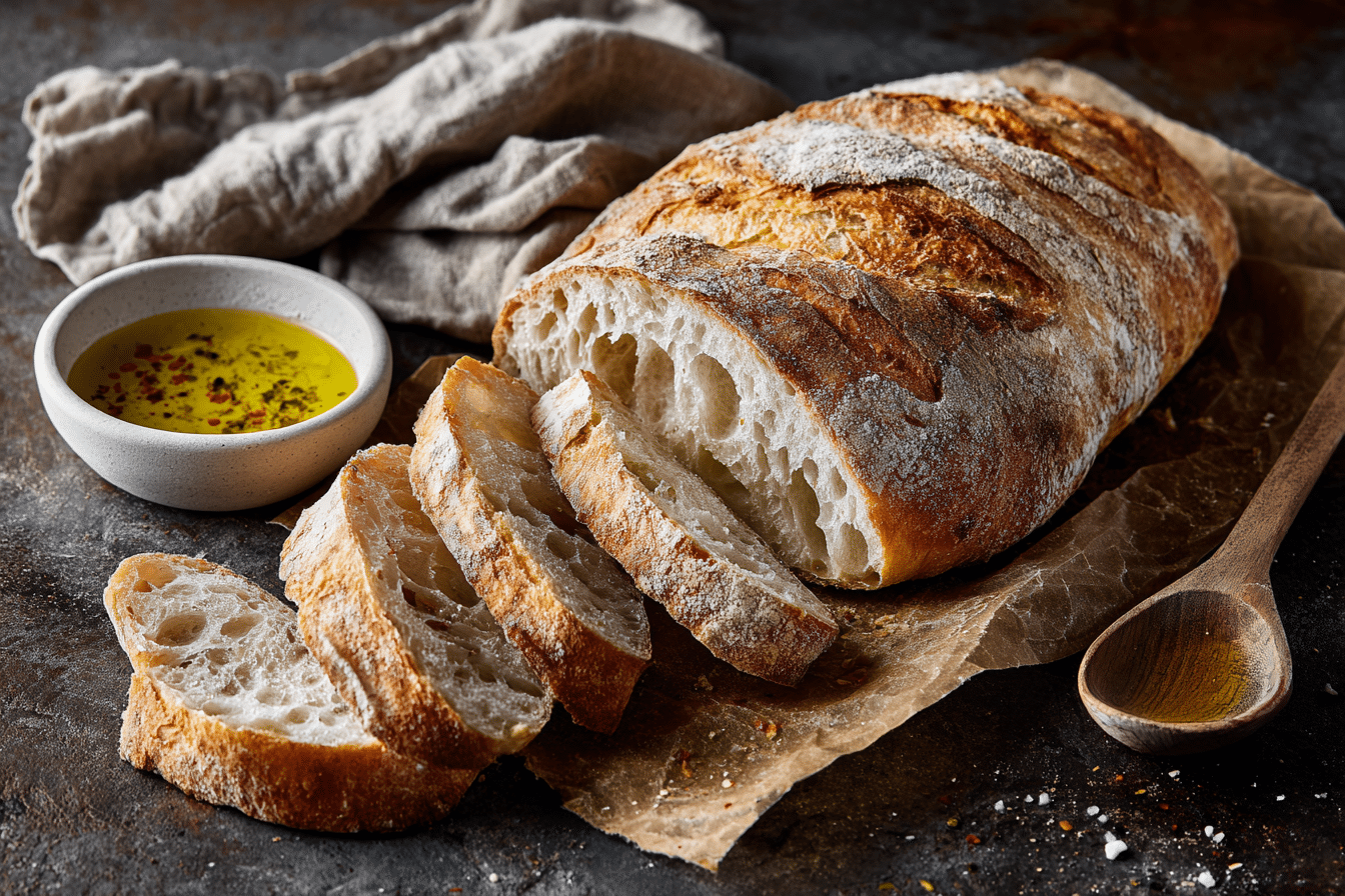 A rustic, no-knead Italian bread with a chewy crust and light, airy crumb. Made with just four ingredients and minimal effort, perfect for sandwiches or dipping.