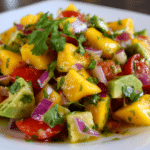 Mango Salad is a vibrant dish that brings together juicy ripe mangoes, crisp vegetables, and a tangy dressing in every forkful. It is light yet satisfying, with a balance of sweetness, acidity, and gentle heat that makes it perfect for warm days.
