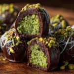 No-Bake Dubai Chocolate Balls made with dates, roasted nuts, and rich cocoa—soft, chewy, and rolled in coconut or dipped in chocolate. A wholesome, elegant treat.