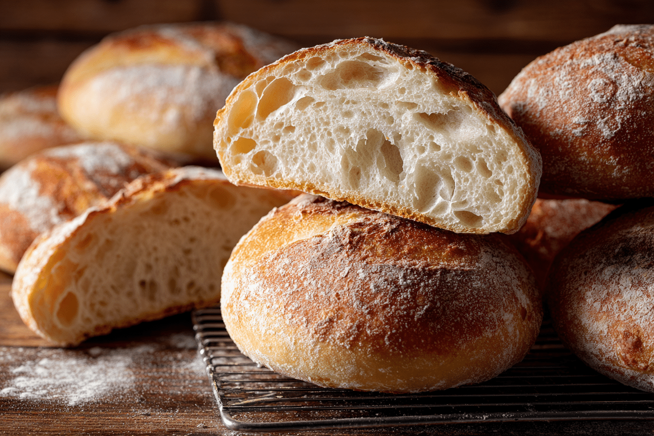 What sets No-Knead Ciabatta with a Light and Airy Crumb apart is its high hydration dough and slow fermentation. Instead of kneading, time does the work. The dough develops structure as it rests, creating that signature airy crumb and delicate chew.
