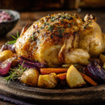 Oven roasted garlic butter chicken is the kind of dish that brings everyone to the table. Golden, crisp skin covers tender, juicy meat that’s been infused with the rich flavor of garlic, herbs, and creamy melted butter. It’s simple enough for a weeknight and elegant enough for guests — the kind of recipe you’ll turn to again and again.