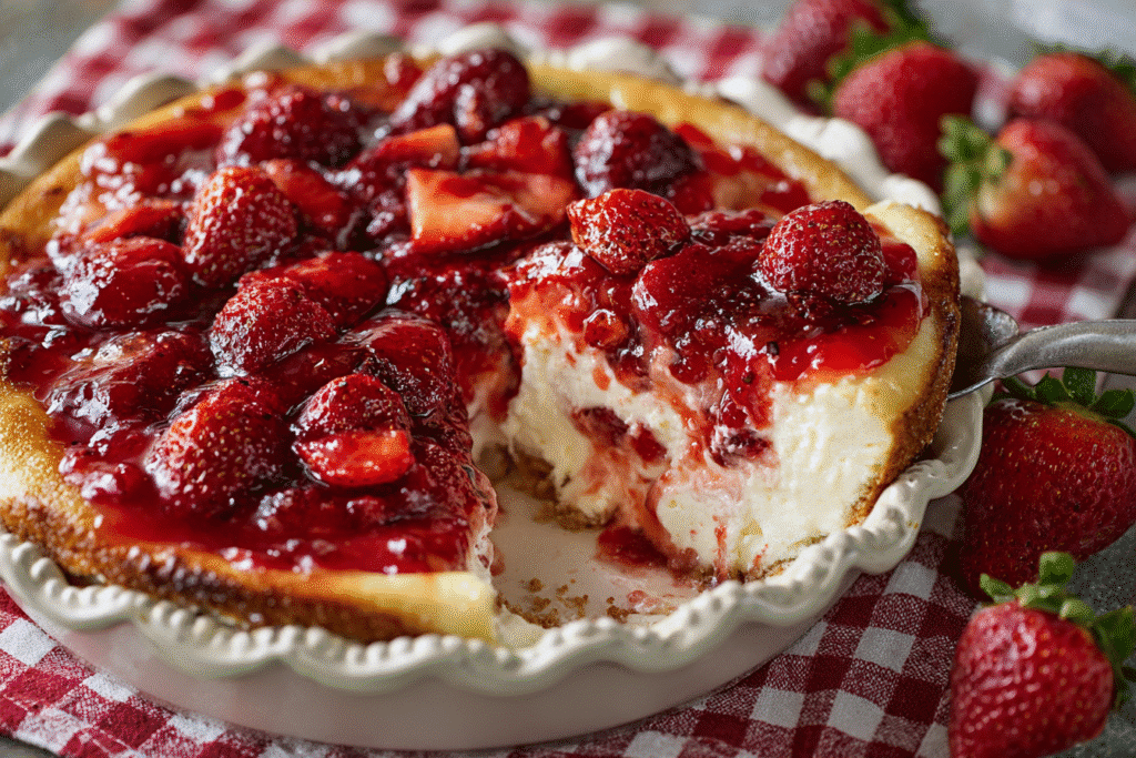Few desserts are as simple — or as delicious — as a Strawberry Cheesecake Dump Cake. This cozy, crowd-pleasing treat layers sweet strawberry pie filling with a rich, tangy cream …