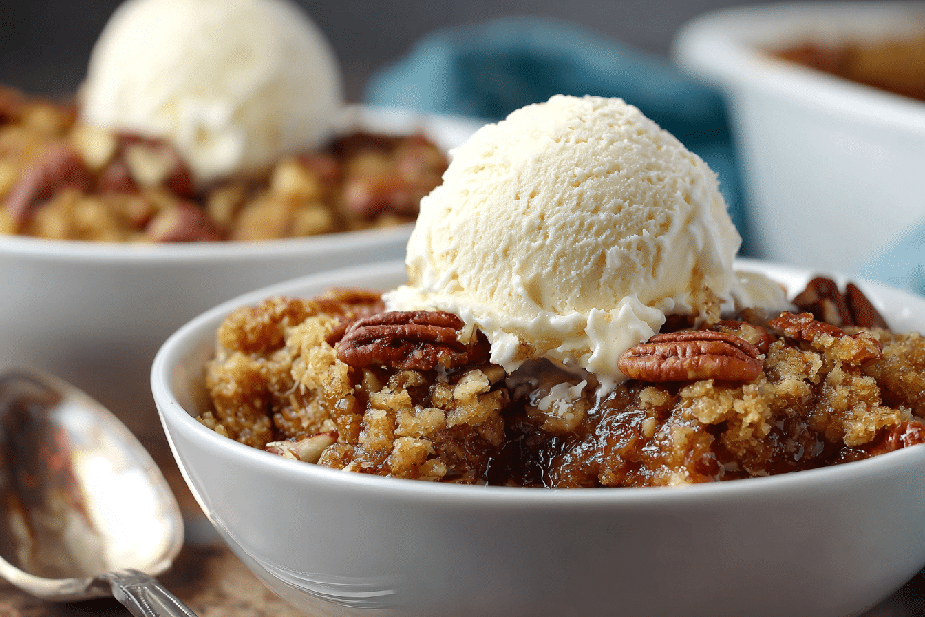 A rich, gooey dessert that combines the flavor of pecan pie with the ease of a dump cake. No crust, no fuss — just mix, dump, and bake.