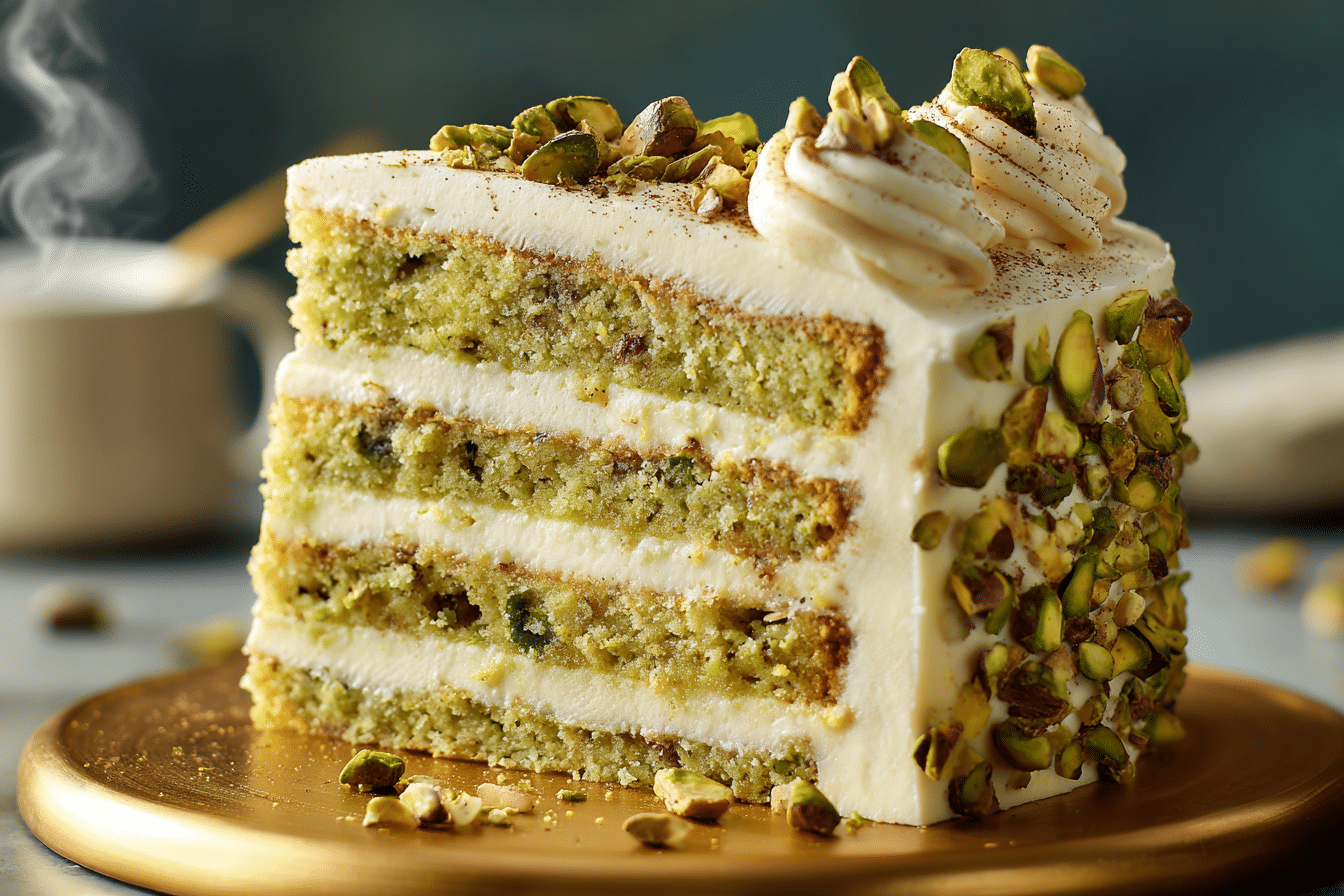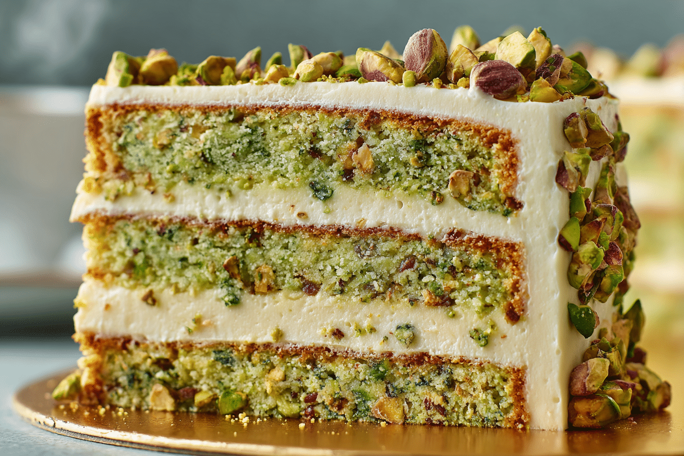 This cake is elegant yet approachable, combining classic baking techniques with fresh, balanced flavors that highlight the natural richness of pistachios and the velvety texture of mascarpone.