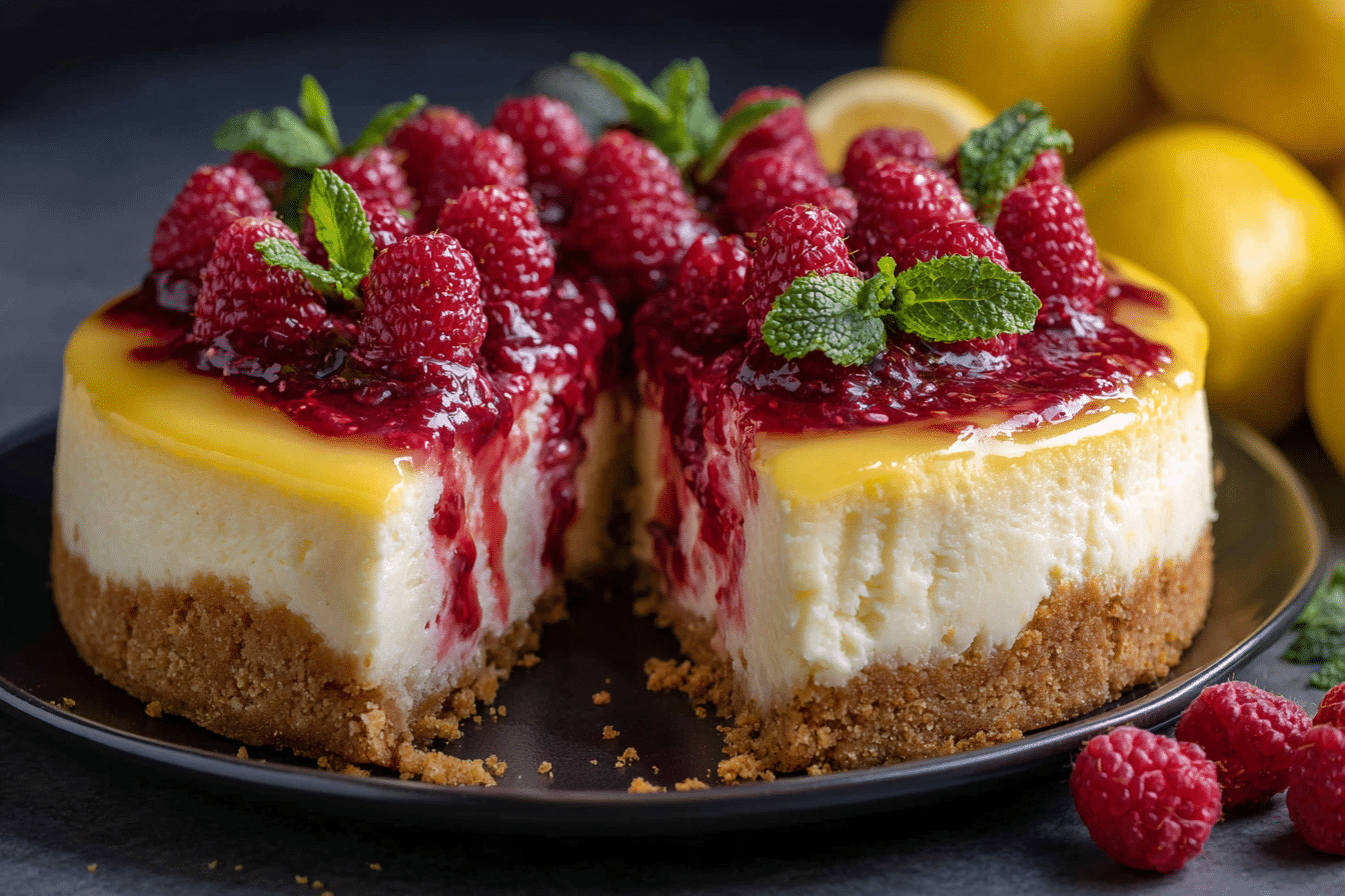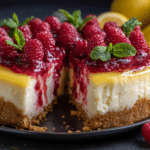 Raspberry Lemon Cheesecake is a stunning dessert that balances creamy richness with vibrant fruit flavor. Smooth lemon-infused cheesecake rests on a buttery crust and is crowned with a swirl or layer of sweet-tart raspberry sauce. Every bite offers silky texture, bright citrus notes, and bursts of berry sweetness.