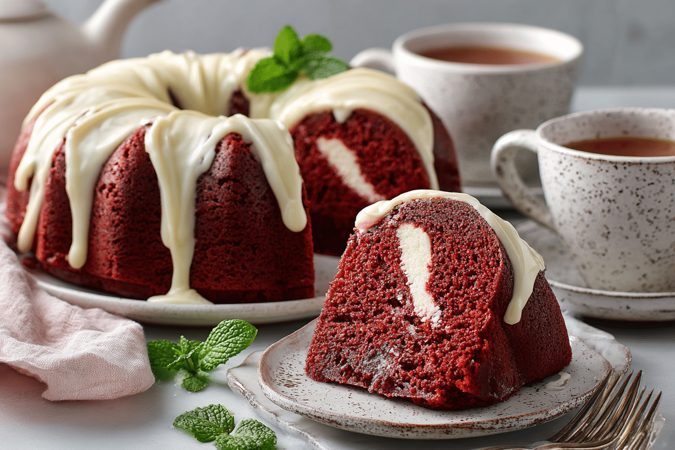 Classic red velvet flavor meets the dense, buttery texture of pound cake in this irresistible Red Velvet Pound Cake. It’s rich, moist, and finished with either a sweet glaze or a generous layer of cream cheese frosting — making it ideal for birthdays, Valentine’s Day, or anytime you want a dessert that feels a little extra special.