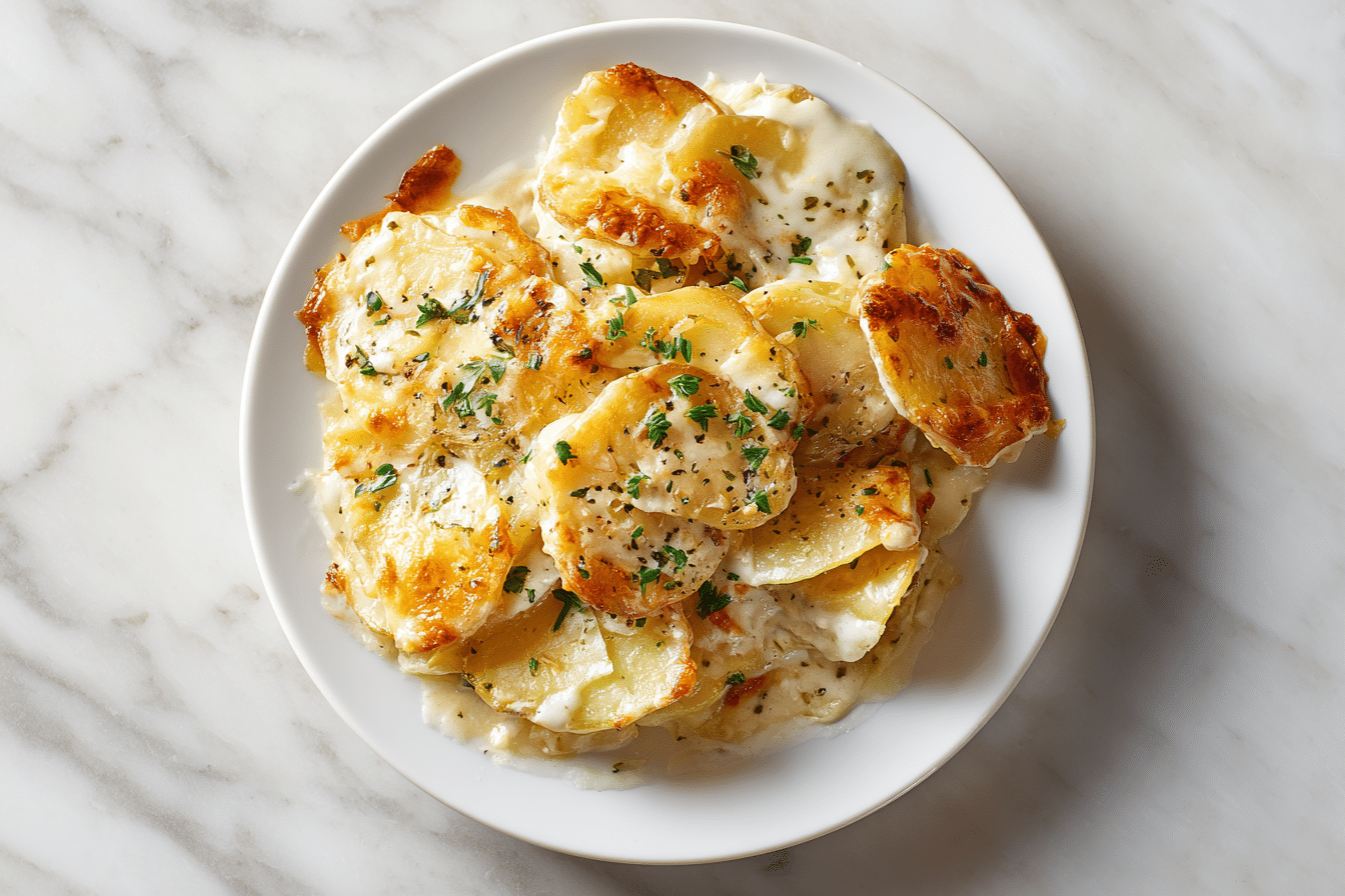Scalloped potatoes are hearty and rich in carbohydrates, providing energy and satiety. The creamy sauce adds fat and calories, making the dish indulgent and satisfying. Using lower-fat milk or reducing butter can lighten it slightly. Adding vegetables increases fiber and nutritional value, while cheese contributes protein and flavor. Fresh herbs provide antioxidants and freshness. Gluten-free flour can replace all-purpose flour if needed. Proper portion control ensures you enjoy this indulgent side without overdoing it.