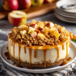 A rich and creamy cheesecake layered with cinnamon-spiced apples and finished with homemade salted caramel — the perfect fall dessert fusion.