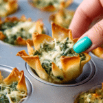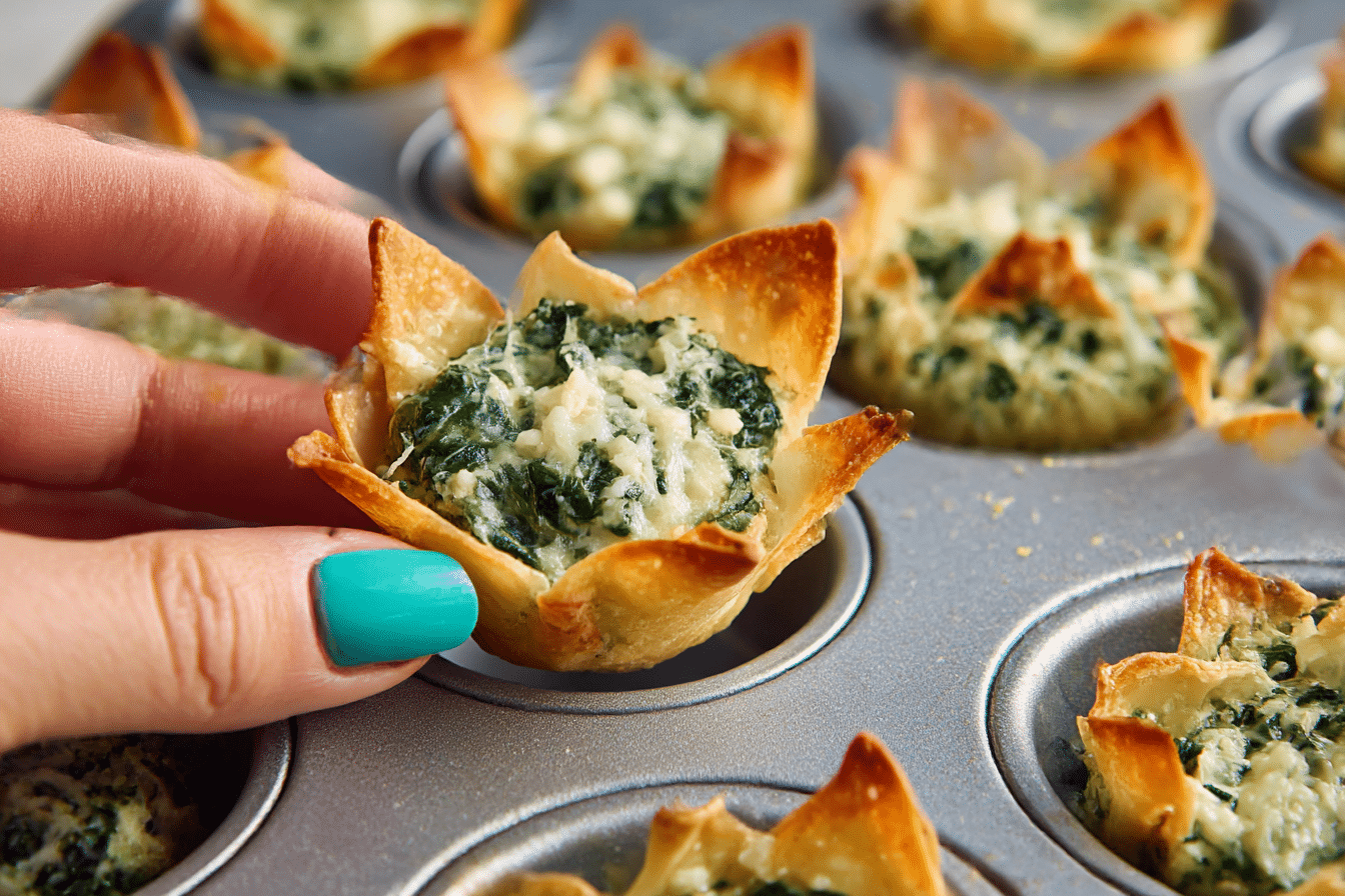 Each bite offers contrast in texture. The edges of the wonton cups turn golden and crunchy in the oven, while the spinach and cheese filling stays soft and rich inside. They are easy to handle, making them ideal for parties, holiday gatherings, and casual get-togethers.