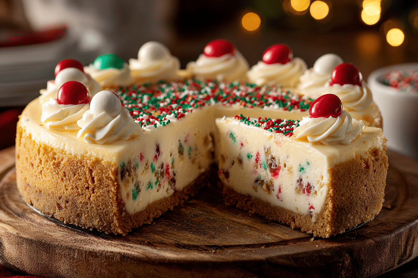 Whether served plain or topped with whipped cream or fresh berries, Sugar Cookie Cheesecake offers balanced sweetness, creamy texture, and comforting flavor in every slice.
