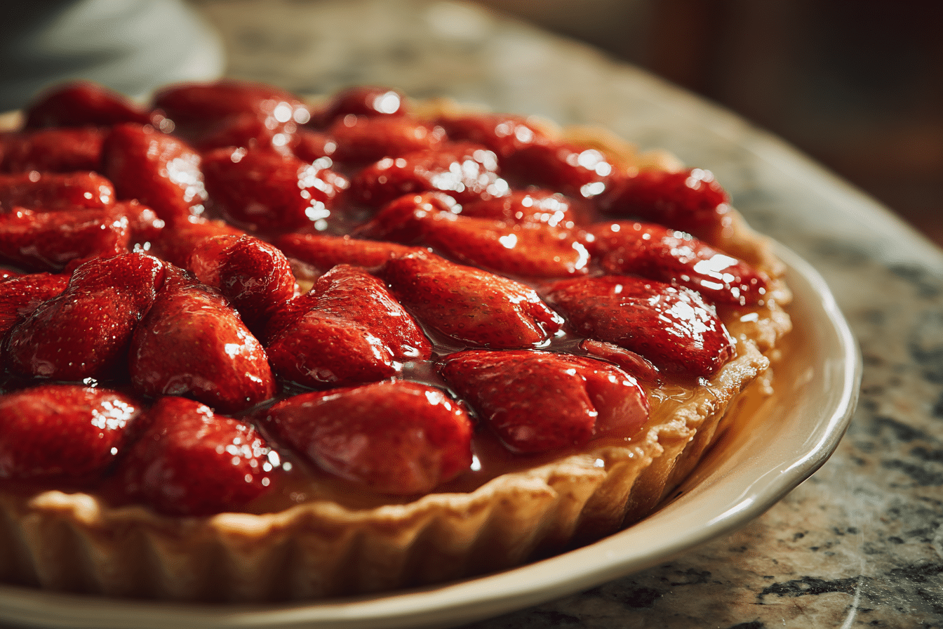 Avoid overcooking the glaze, which can result in a rubbery texture. Use berries that aren’t overly wet to maintain a crisp crust. Adjust sugar and lemon to taste depending on the sweetness of your strawberries. Proper chilling ensures neat slices and a glossy, professional finish.