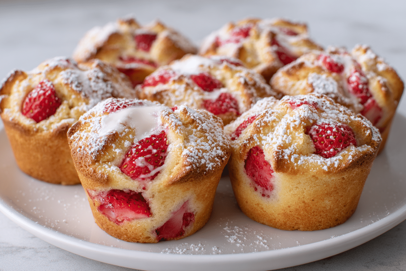 The fresh strawberries in this recipe are the highlight, contributing vibrant color, juicy sweetness, and a slight tartness that pairs beautifully with the creamy muffin base. If fresh strawberries aren’t available, frozen berries can be used; just be sure to thaw and drain them first to prevent excess moisture from affecting the batter.